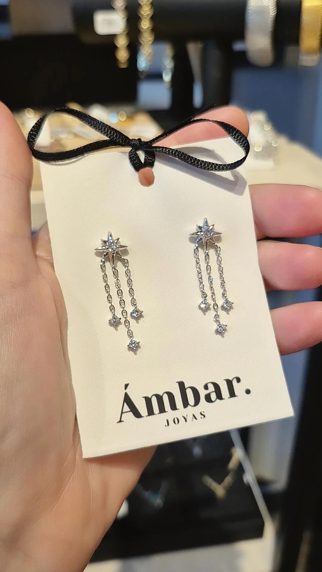 El diseño es moderno, femenino y muy versátil. Las estrellas iluminan el rostro, mientras las cadenas aportan ese efecto de movimiento que hace que la pieza se vea fina y llamativa sin exagerar.
