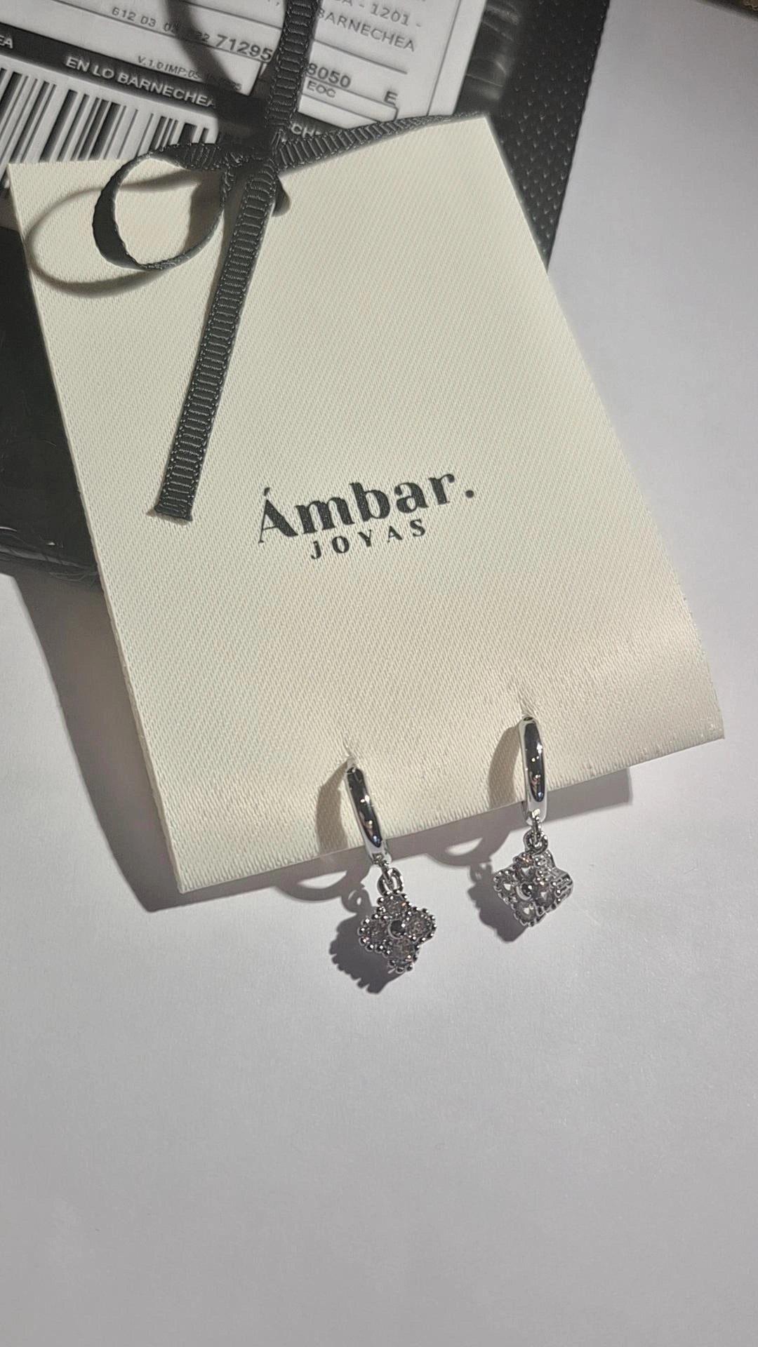 Cada pendiente cuenta con un delicado colgante en forma de flor adornado con zirconias brillantes, realzado por un baño de rodio que les da un acabado elegante y duradero.