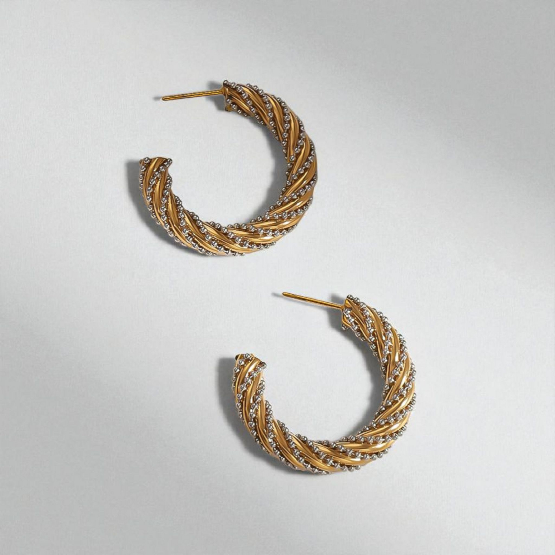 Diseño: Argollas trenzadas bicolor (dorado y plateado).