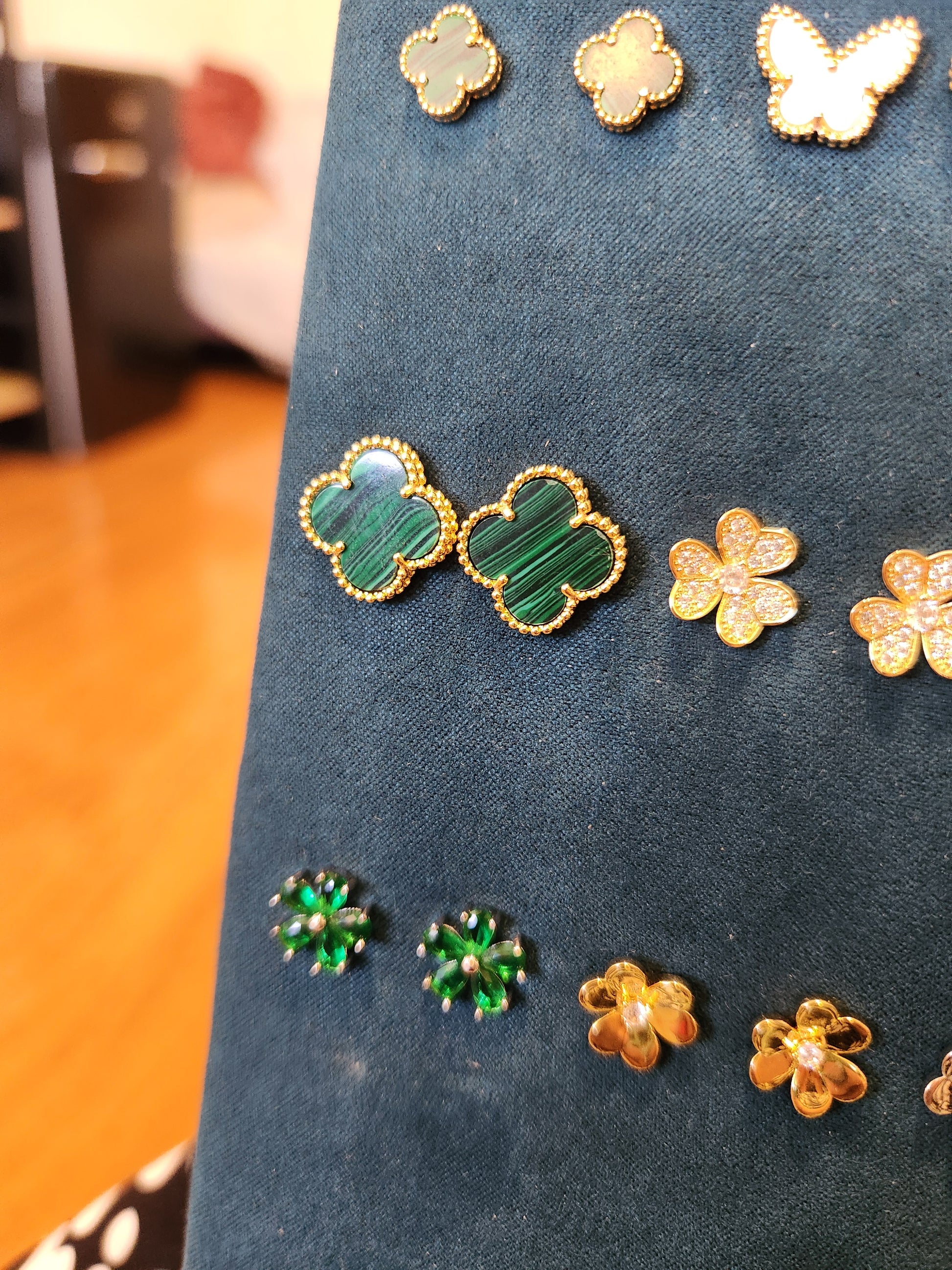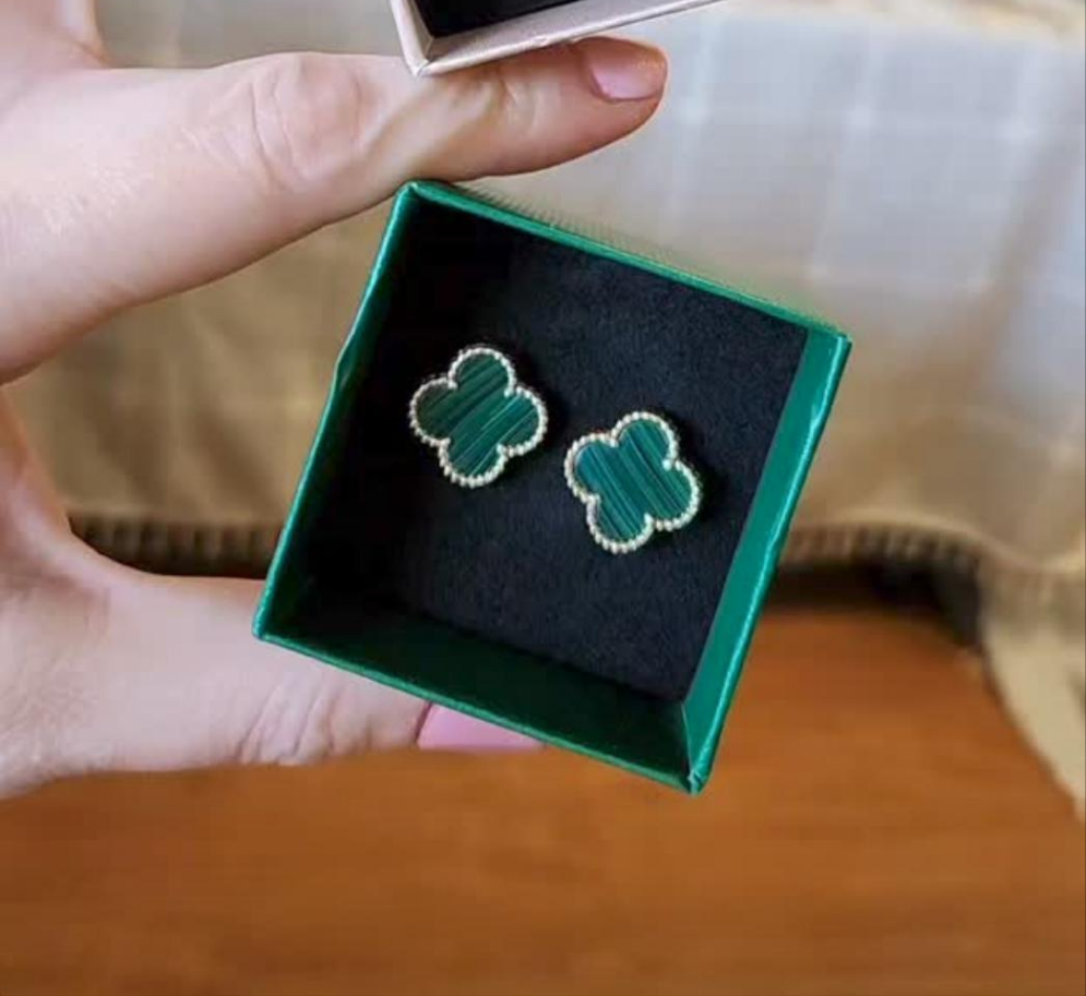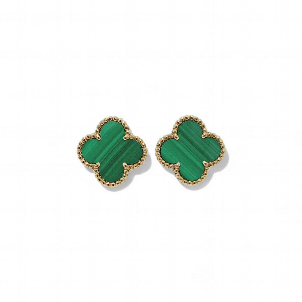Aros Clover Malaquita Trébol Dorado