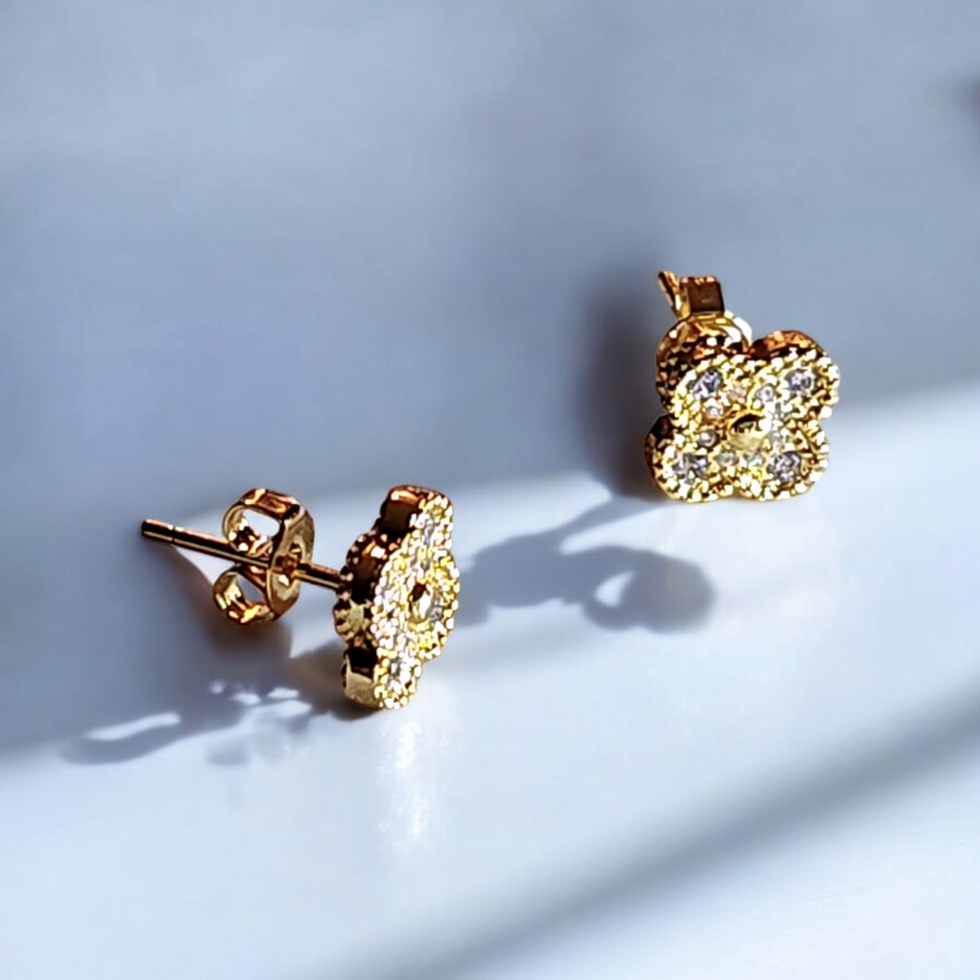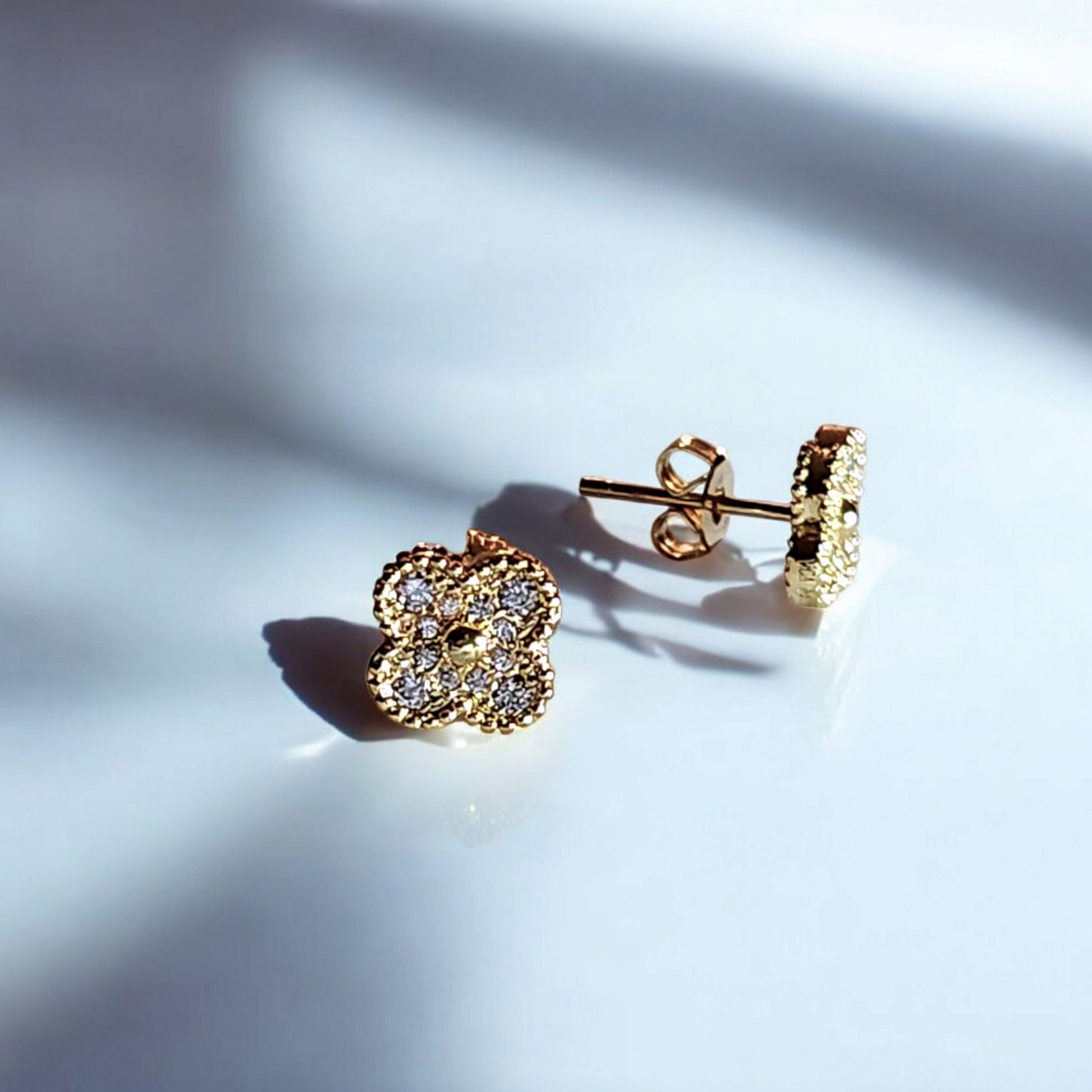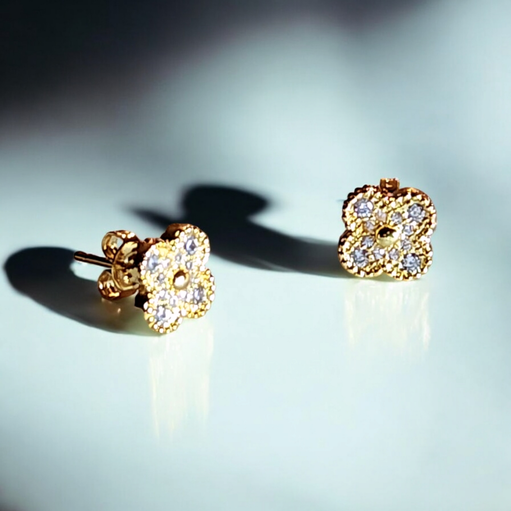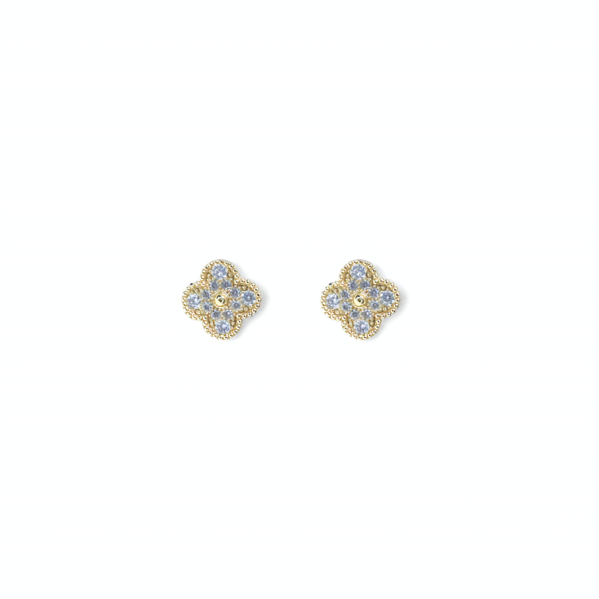 Flores de circones miden 9mm y tienen un palito en la parte posterior, hecho con un hermoso baño de oro 18k.