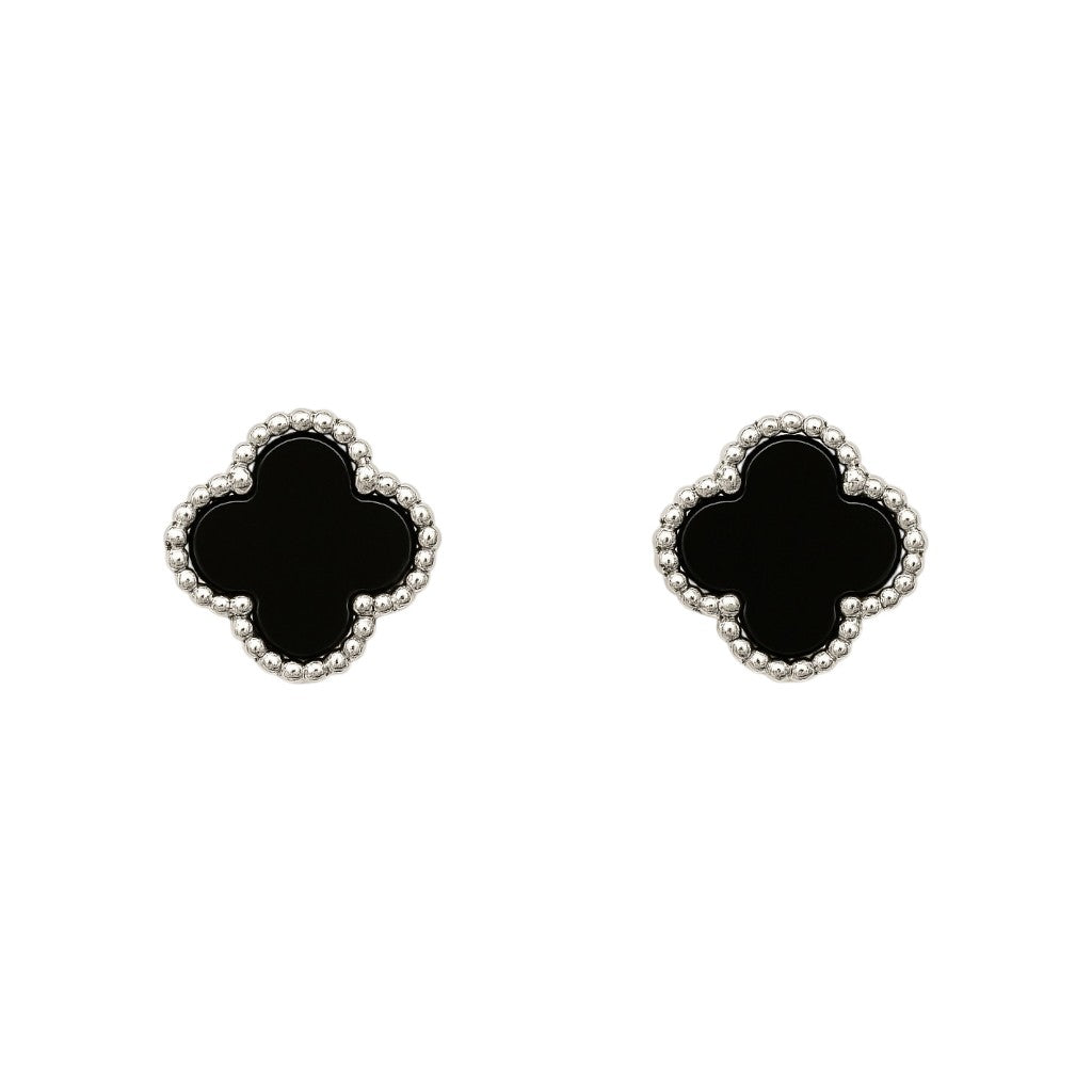 Descubre la elegancia atemporal de nuestros aros trébol en rodio con negra, un diseño sofisticado que combina estilo y versatilidad. Su acabado en rodio brillante resalta el contraste del trébol negro, creando un accesorio moderno y chic, ideal para el uso diario o para elevar cualquier look nocturno.