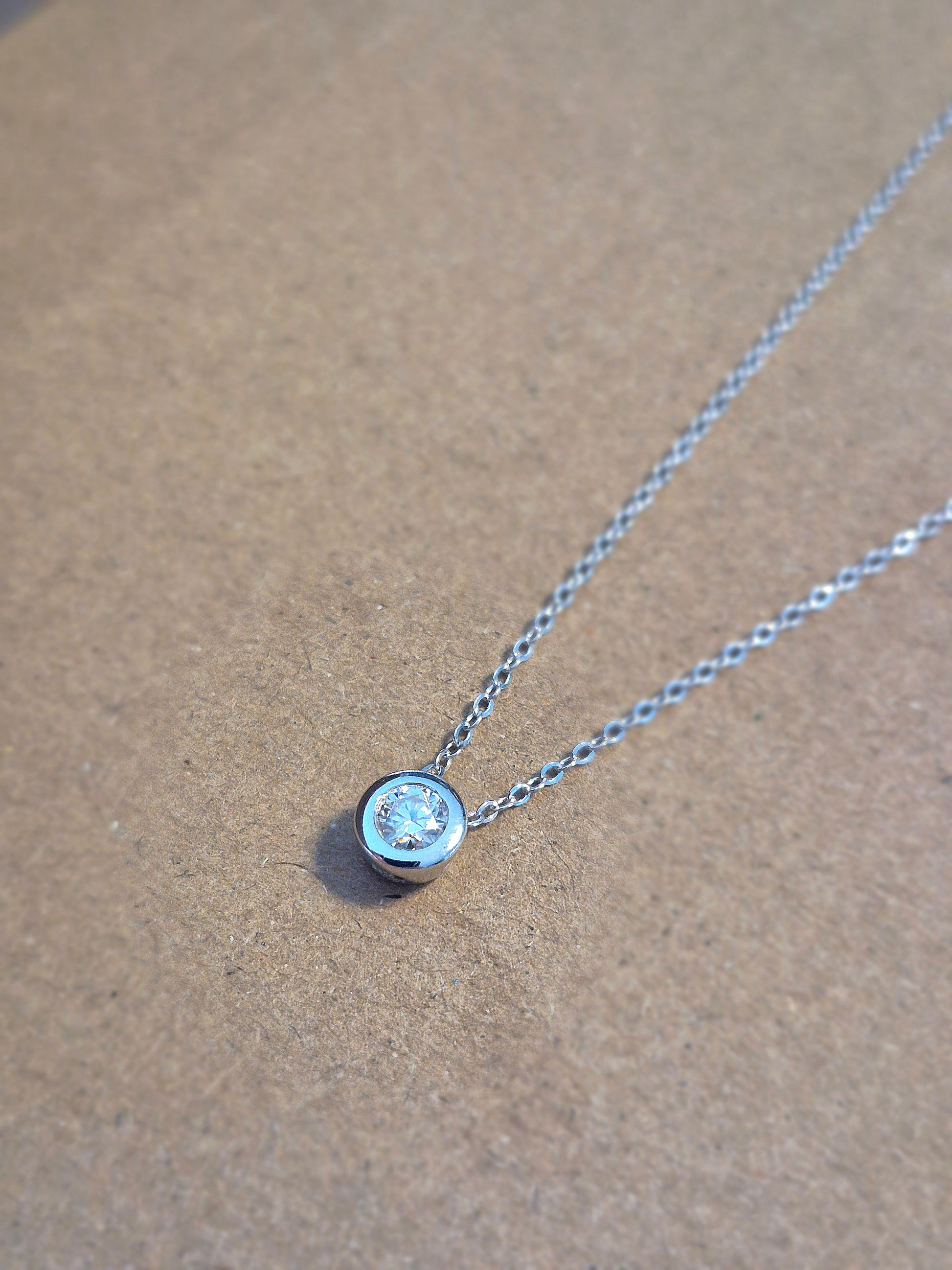 Este collar es la definición de elegancia discreta. Con una moissanita de 4mm redonda de corte brillante, montada en un sofisticado engaste tipo bisel, esta joya captura la luz con cada movimiento y añade un toque de lujo sutil a tu look diario.