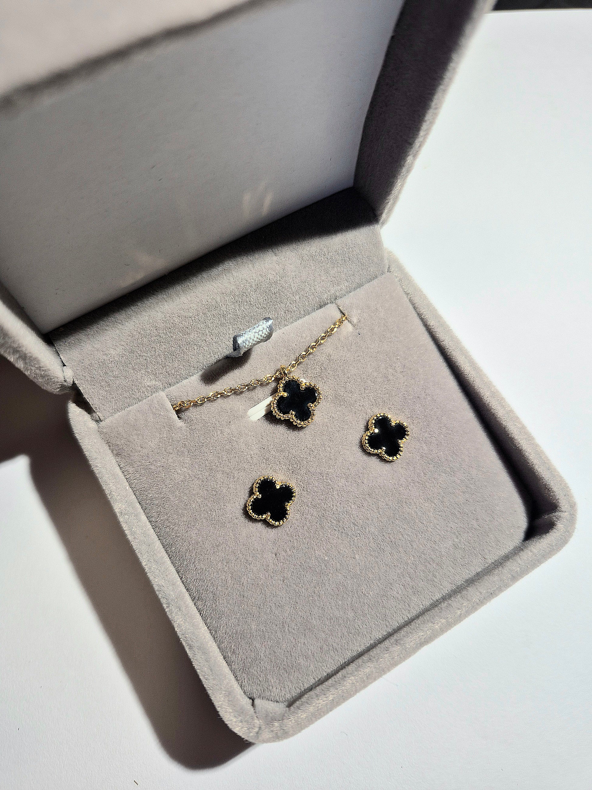 Cadena Sweet Clover Onix - Plata 925 - Baño de oro 18k