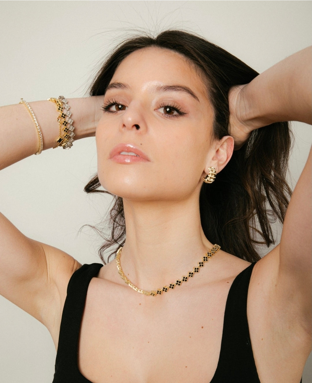 Pulsera Clover Mini con Circonitas Negras - Baño de oro