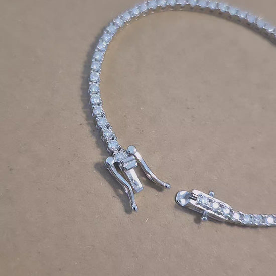 Esta pulsera tennis de plata 925 con baño de oro blanco es una joya clásica.